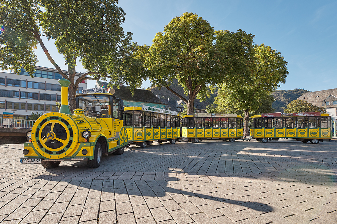 Tauchen Sie ein in die Schönheit von Cochem und lassen Sie sich von der atemberaubenden Aussicht auf die Reichsburg Cochem, die Stadt und die malerischen Weinberge verzaubern. Während einer entspannten Rundfahrt erhalten Sie umfassende Informationen über Cochem und die Kunst des Weinanbaus. Sichern Sie sich Ihre Fahrkarten direkt bei uns im Haus Sonnenschein! Als unser Gast haben Sie sogar die Möglichkeit, morgens kostenfrei mit dem Mosel-Wein-Express nach Cochem zu fahren. (Je nach Saison und Verfügbarkeit)